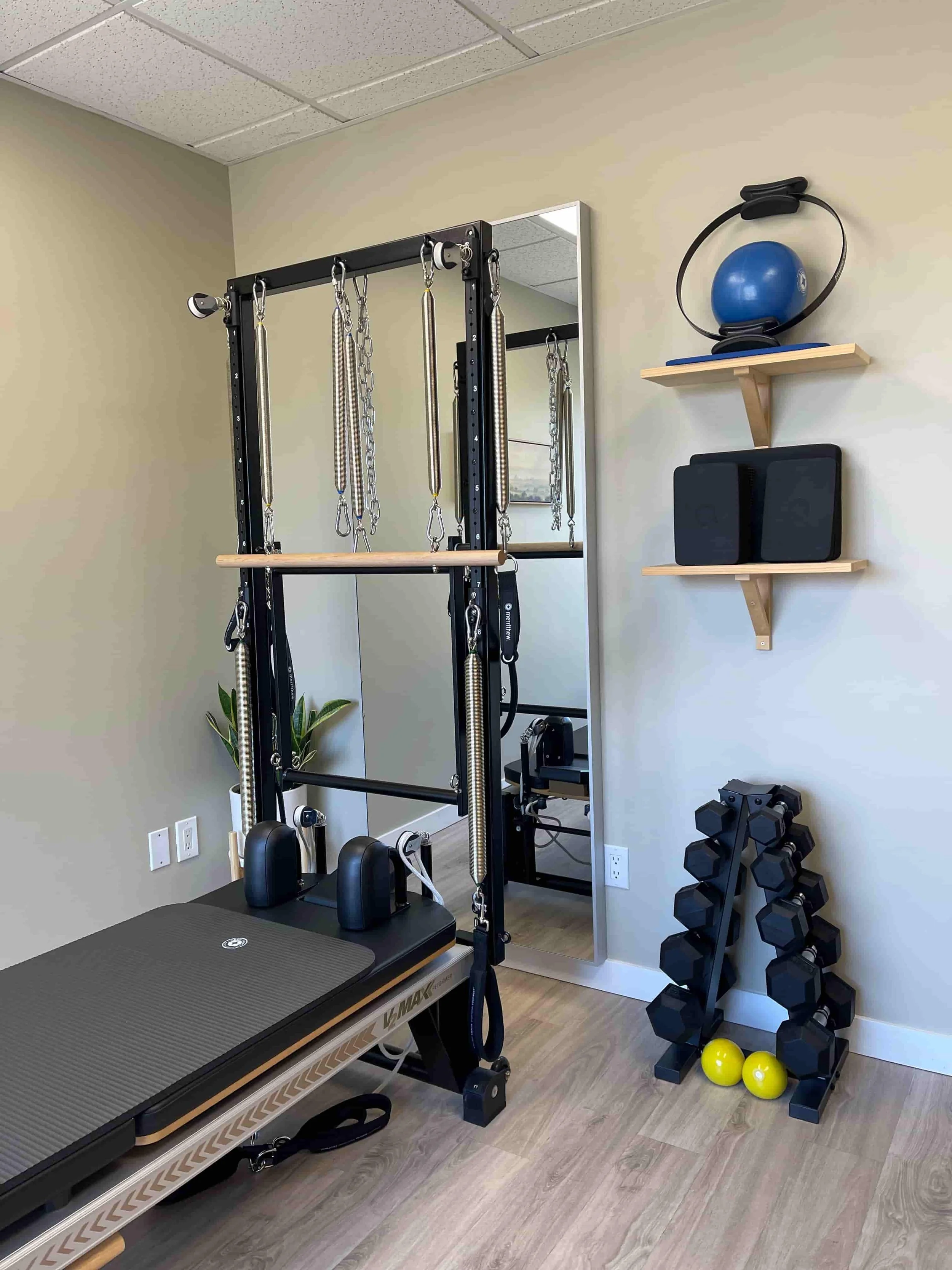 Located in Beautiful Oak Bay BC, the space is designed to energize and inspire. It is equiped with Merrithew (Stott) equipment. I have a V2 Max reformer with vertical frame, a stability chair and select accessory equipment.